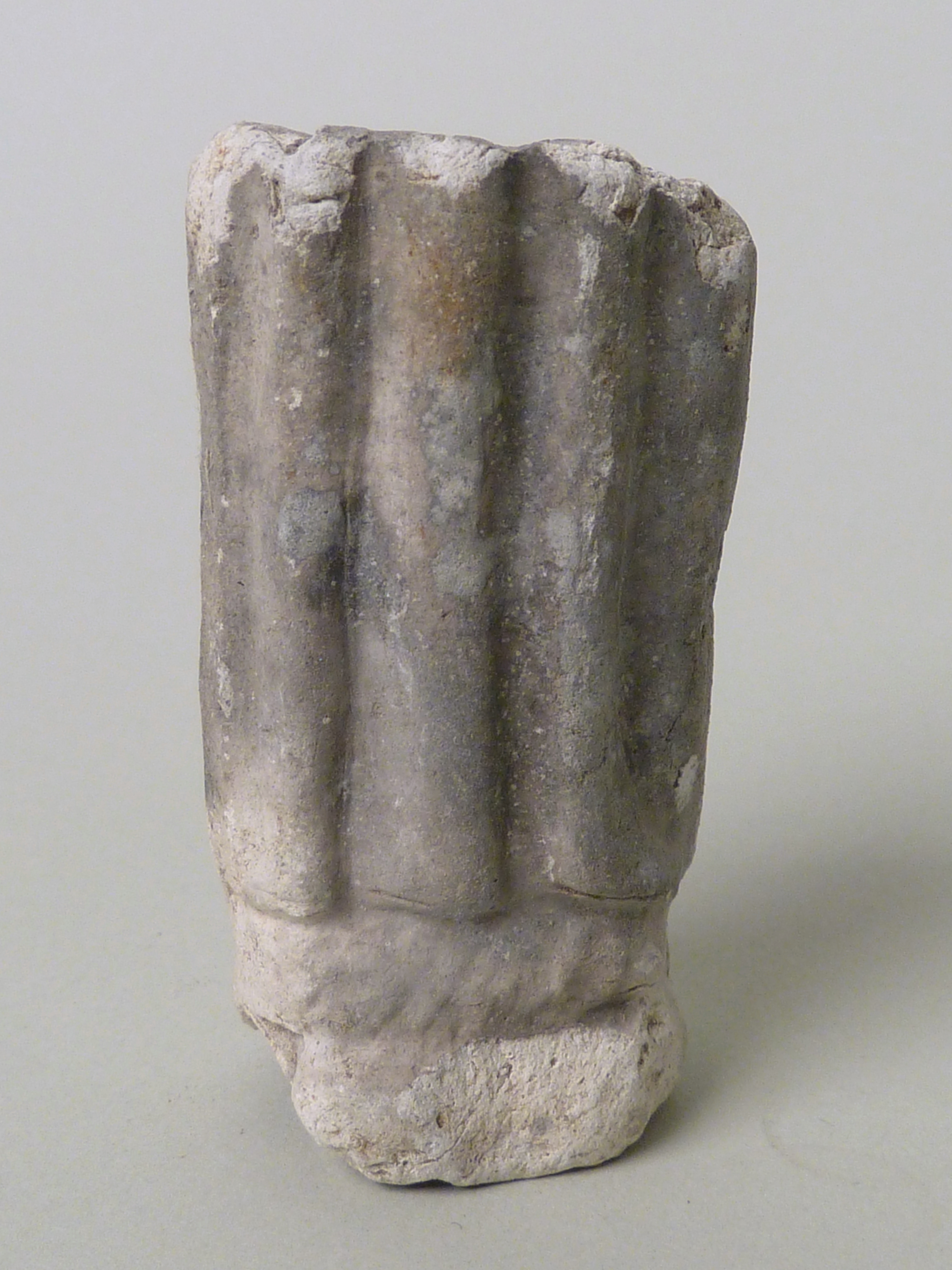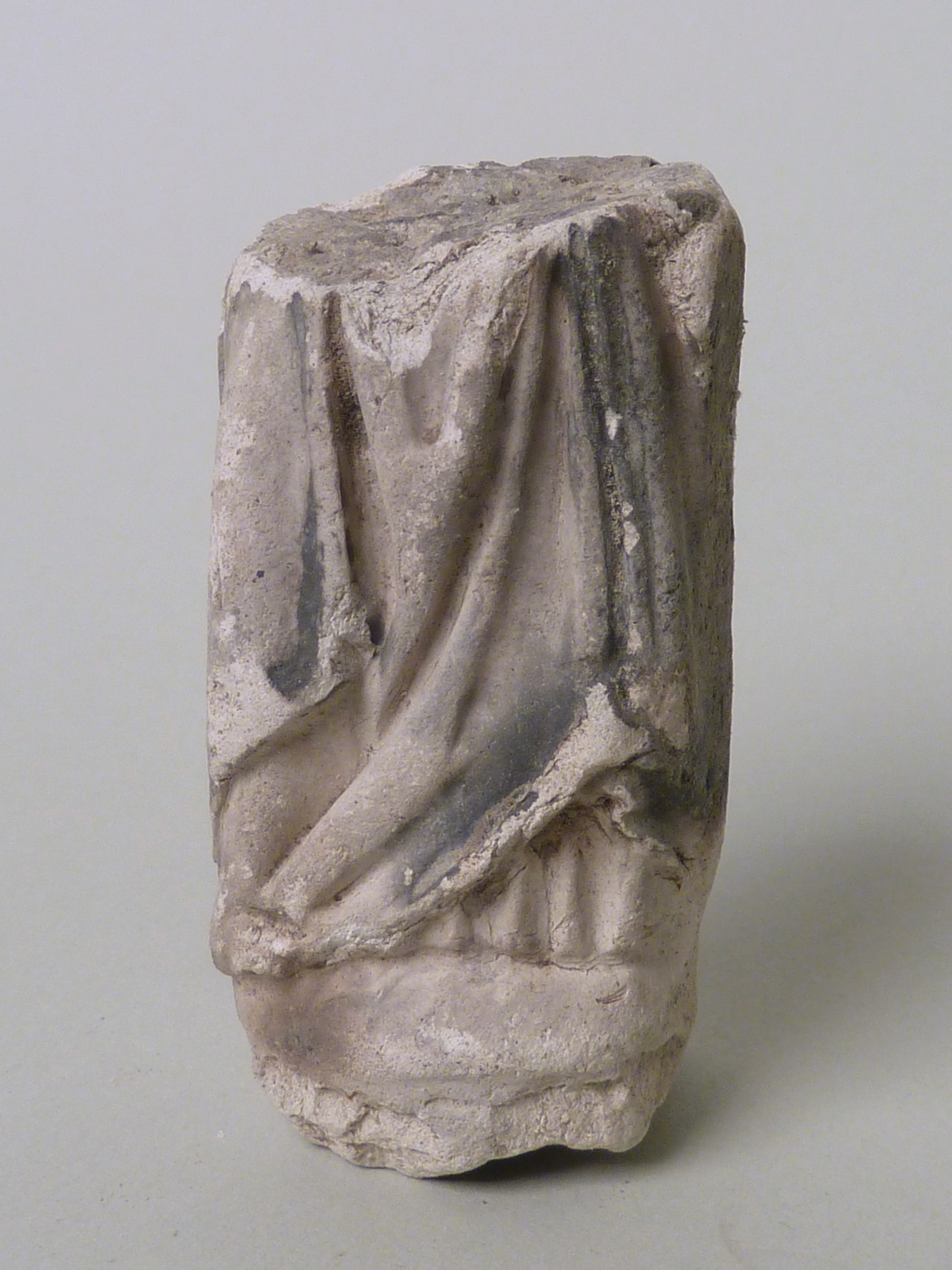 Pijpaarde fragment uit verdronken land van Zuid-Beveland: Maria staande op sokkel