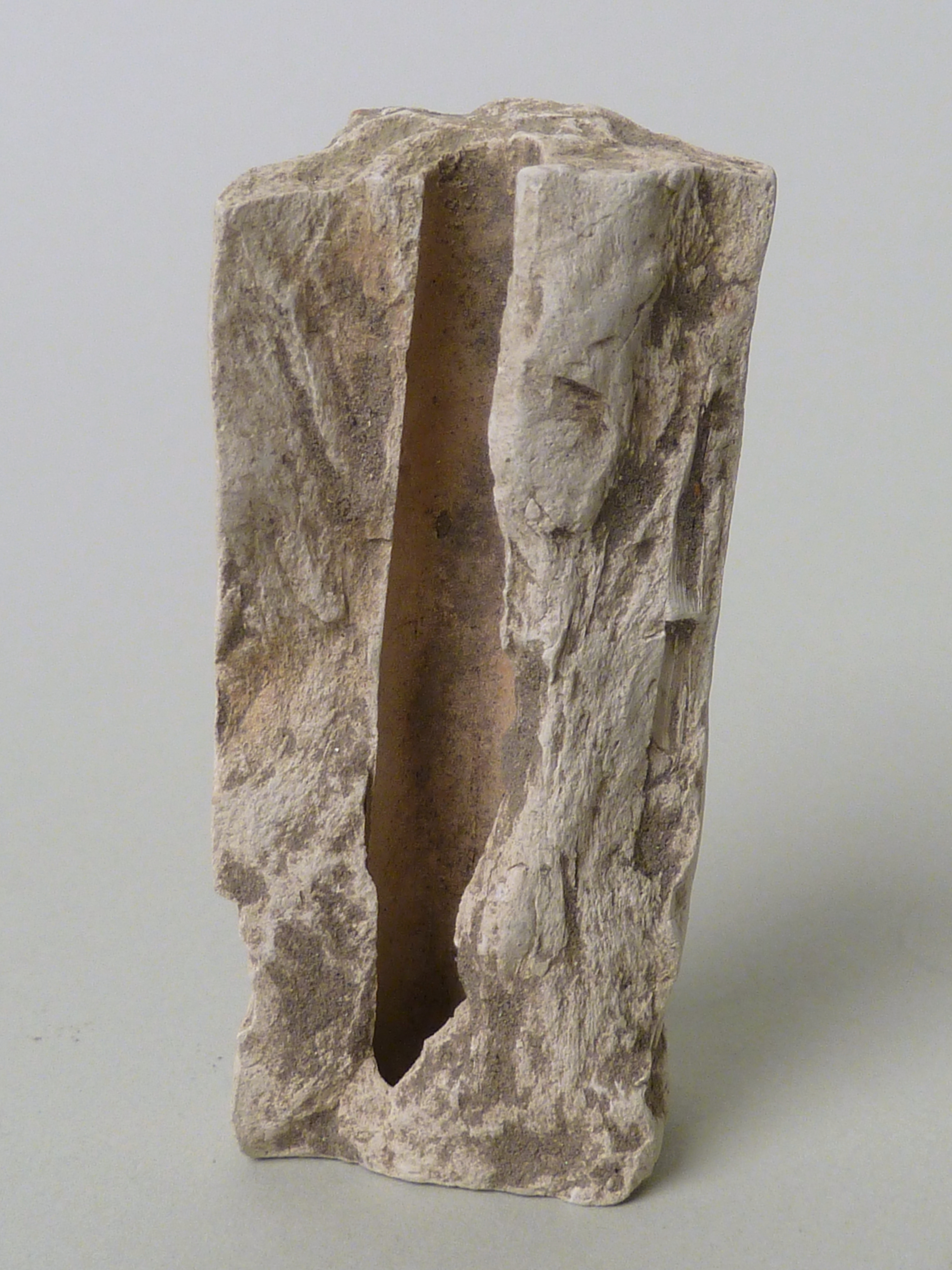 Pijpaarde fragment uit verdronken land van Zuid-Beveland: Maria staande op sokkel