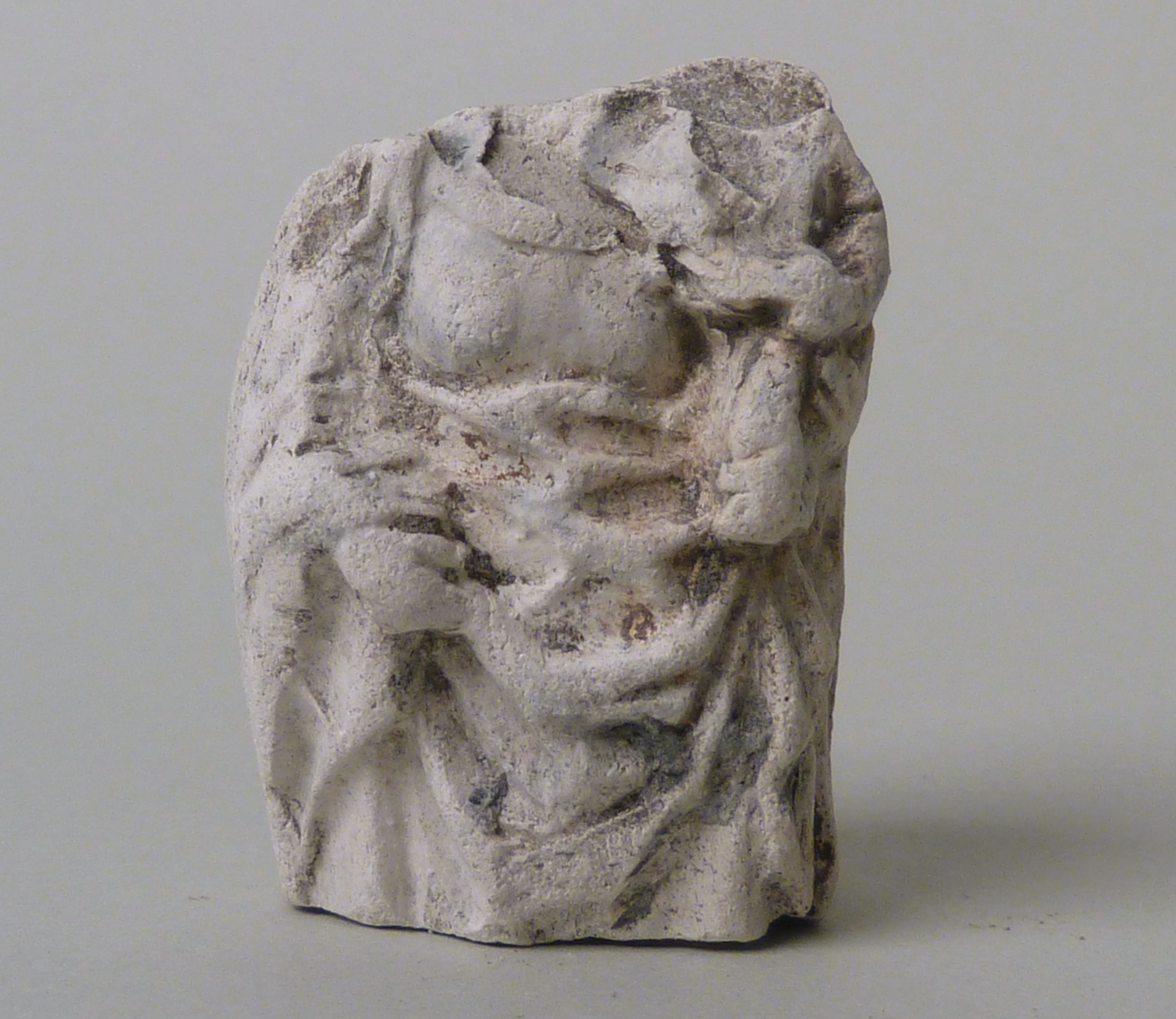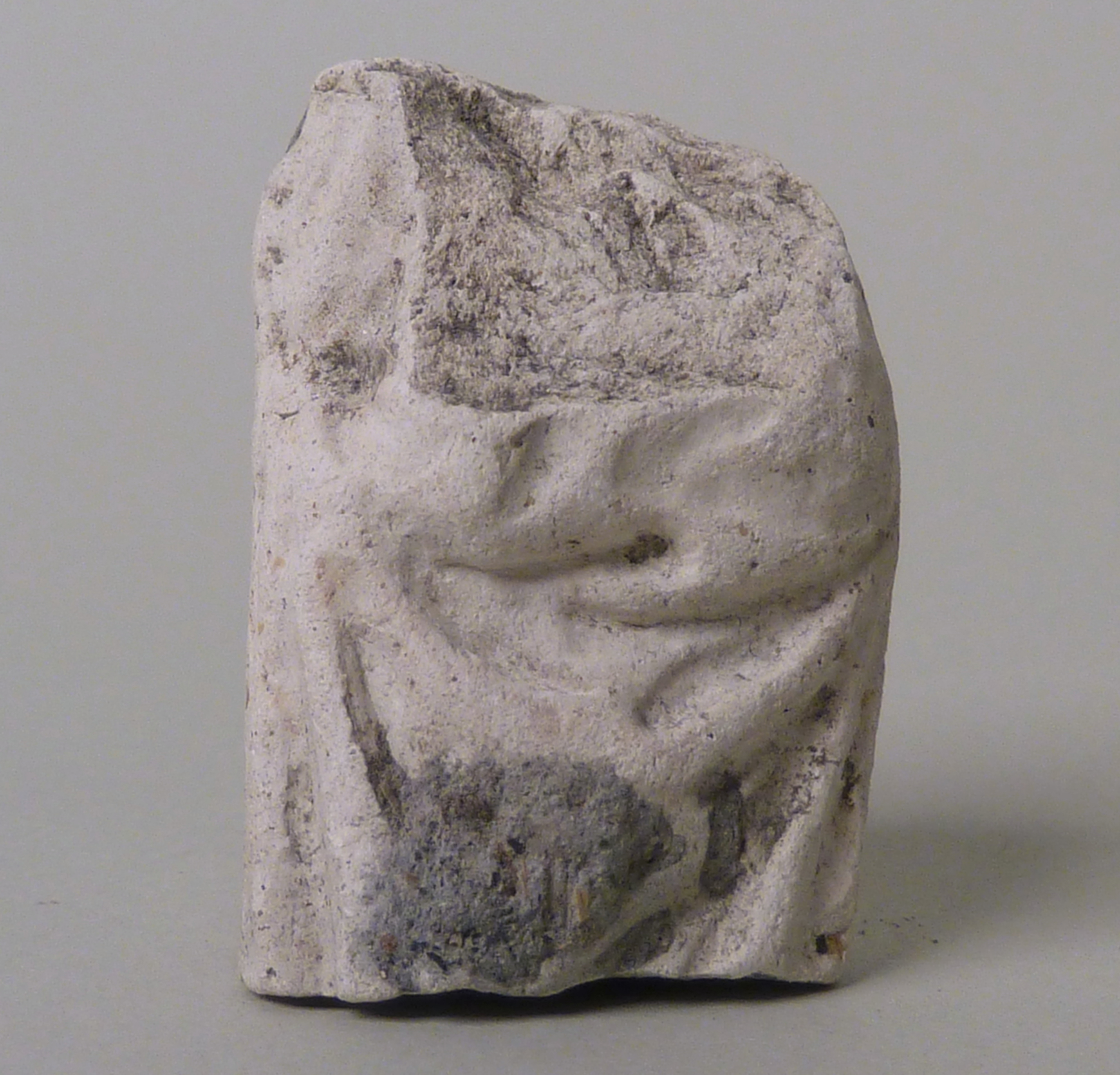 Pijpaarde fragment uit verdronken land van Zuid-Beveland: Maria met kind op rechterarm
