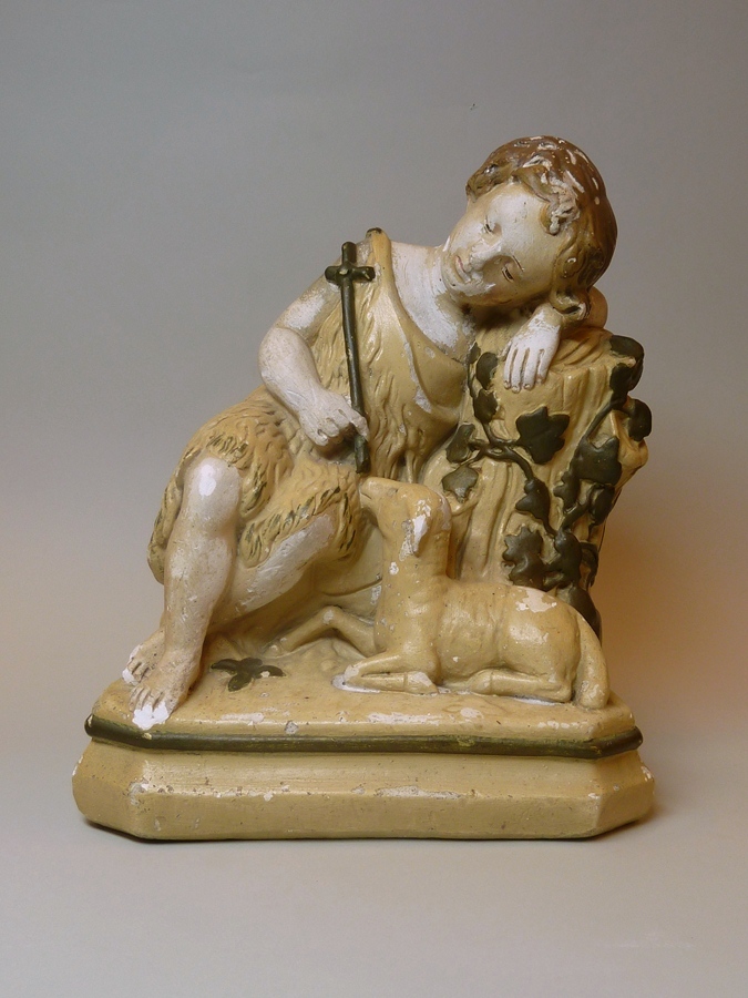 Kleine Johannes de Doper, gezeten, hoofd rustend op rots met lam aan de voeten