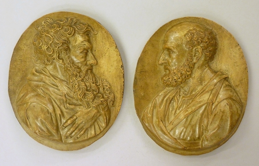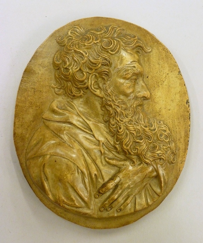 Eerste van twee plaquettes, Petrus, profielbuste