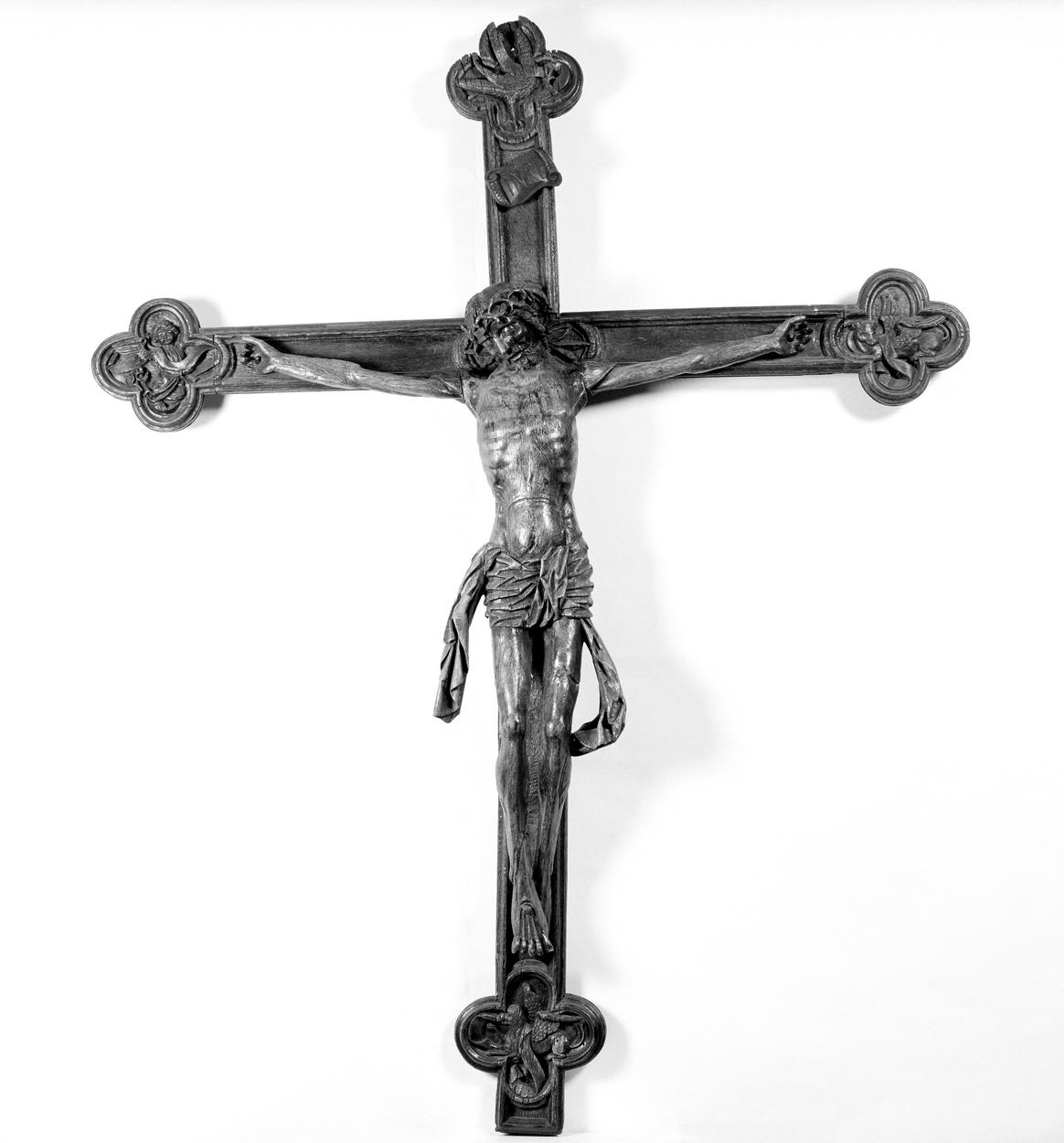 Christus aan het kruis, aan uiteinden evangelistensymbolen