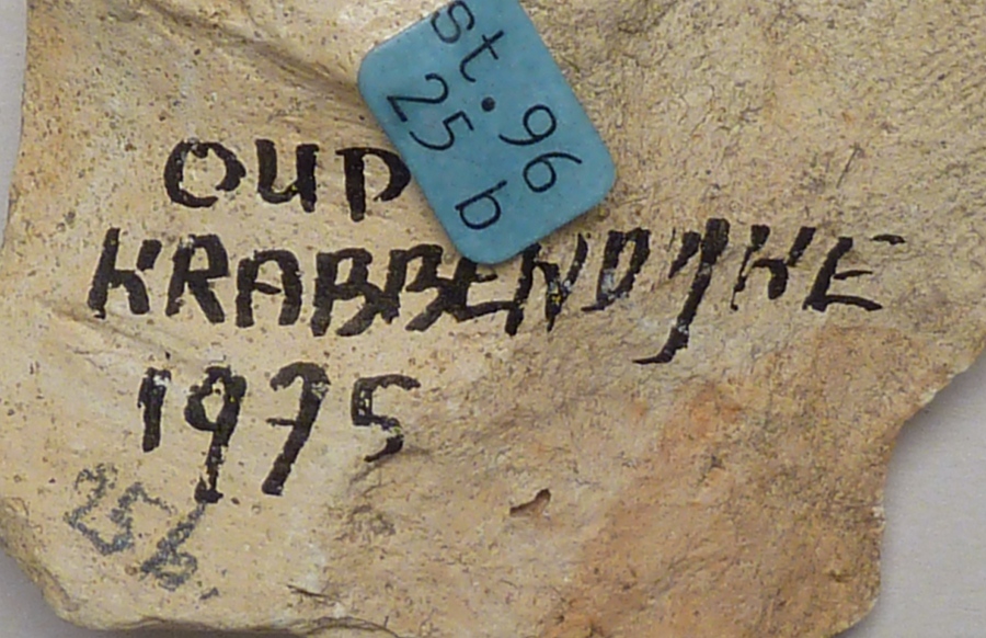 Tweede van drie fragmenten van bovenlijf Maria met kind, vondst Oud Krabbendijke, 1975