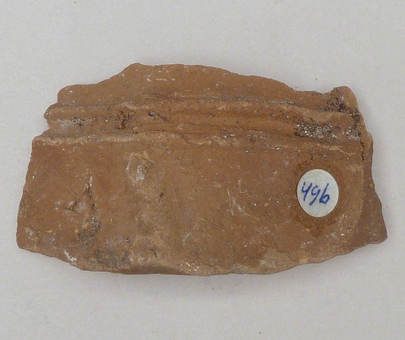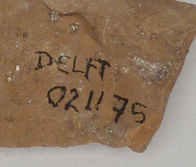 Tweede van twee fragmenten achterzijde vrouwelijke heilige, vondst Delft