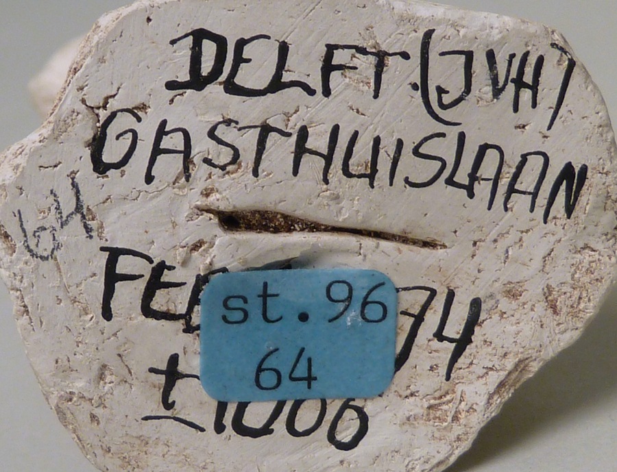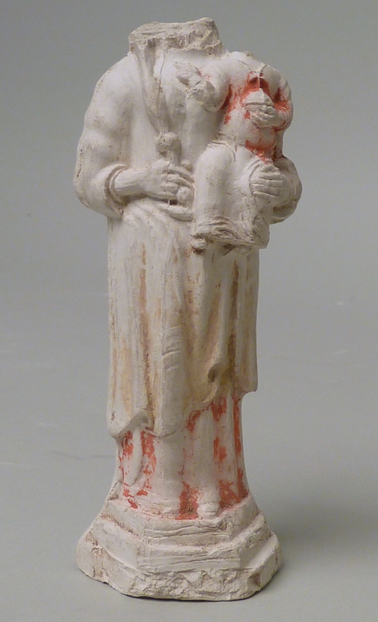 Fragment Maria met kind op linkerarm, op sokkel, vondst Delft, 1974