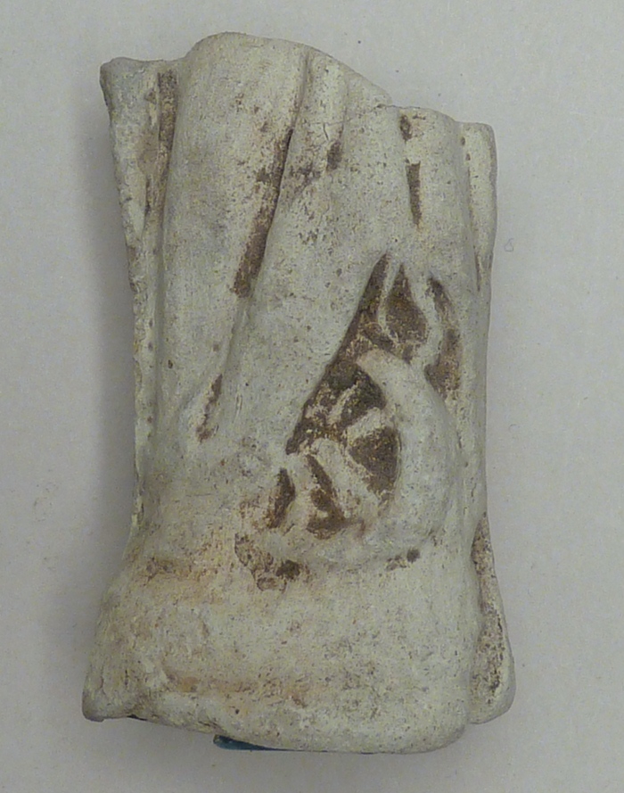 Onderste deel Catharinabeeldje, met rad, vondst Reimerswaal, 1975