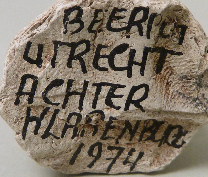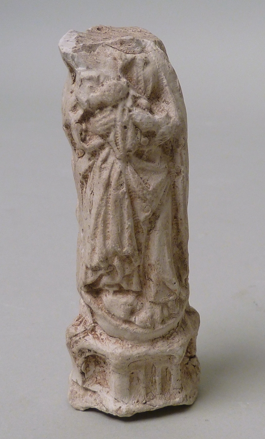 Fragment Maria met kind op rechterarm op maansikkel, op sokkeltje, vondst Utrecht, 1974