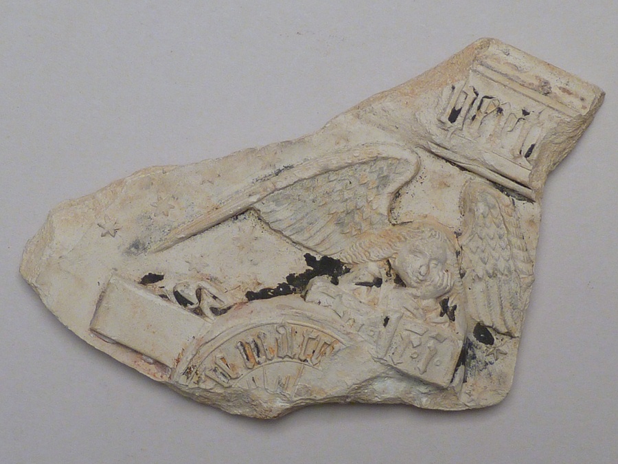 Bovenzijde Calvarievoorstelling met lijst en opschrift, vondst Amsterdam, 1983