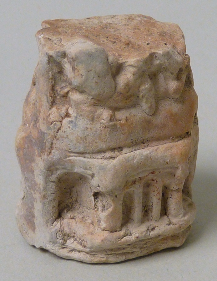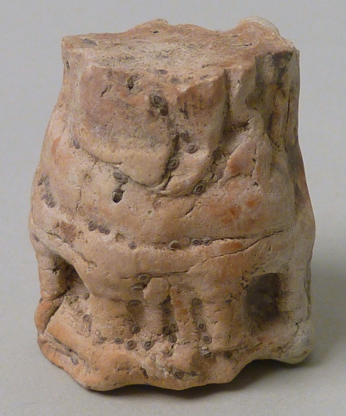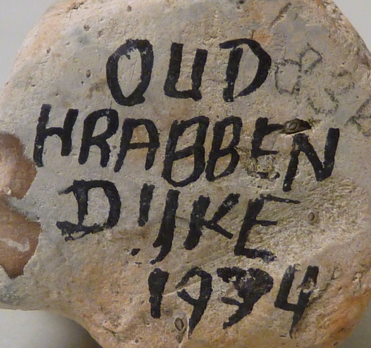 Tweede van drie geprofileerde sokkels van heiligenbeeldjes met bogenfries, Oud Krabbendijke, 1974