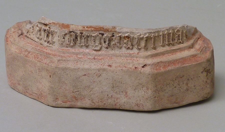 Onderste deel van sokkel van zittend(?) Catharinabeeld, vondst Amsterdam, 1974