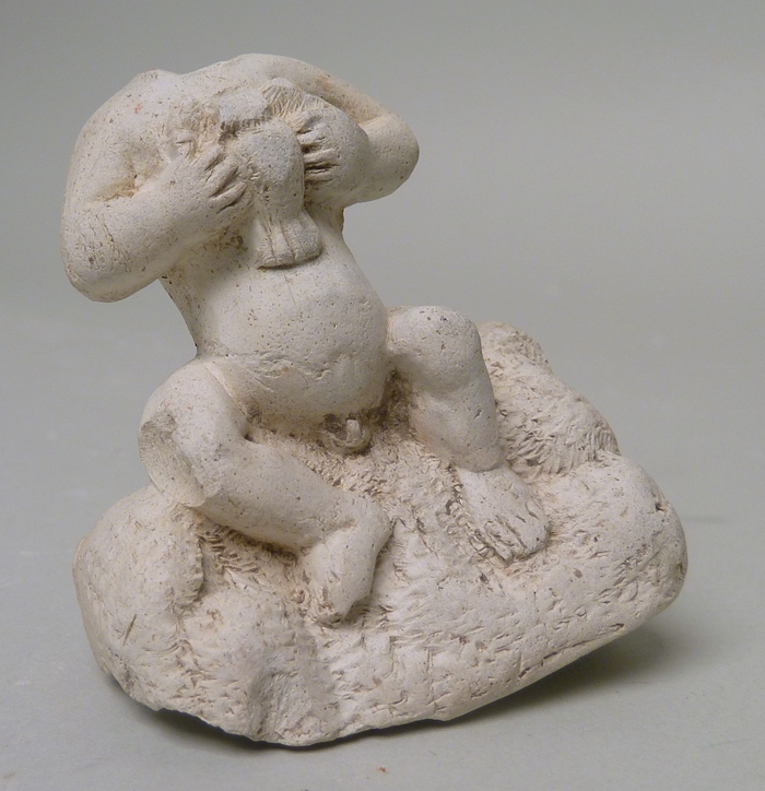 Naakt Christuskind zittend, naar rechts neigend, met vogel in handen, vondst Reimerswaal, 1977