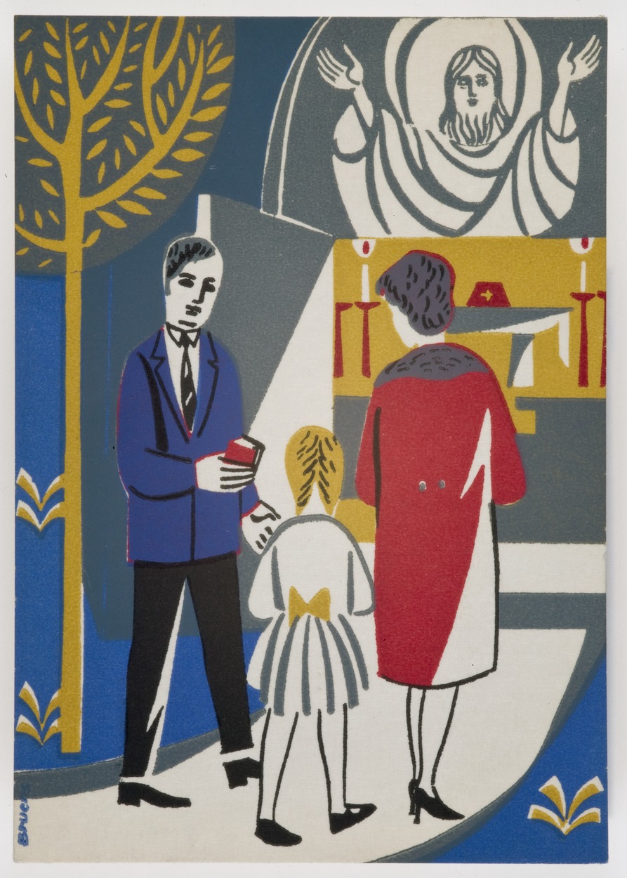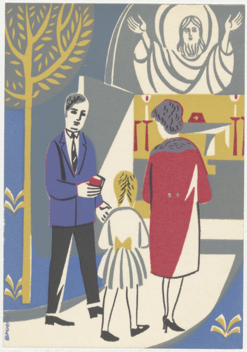 Gezin met dochter gaat naar de kerk