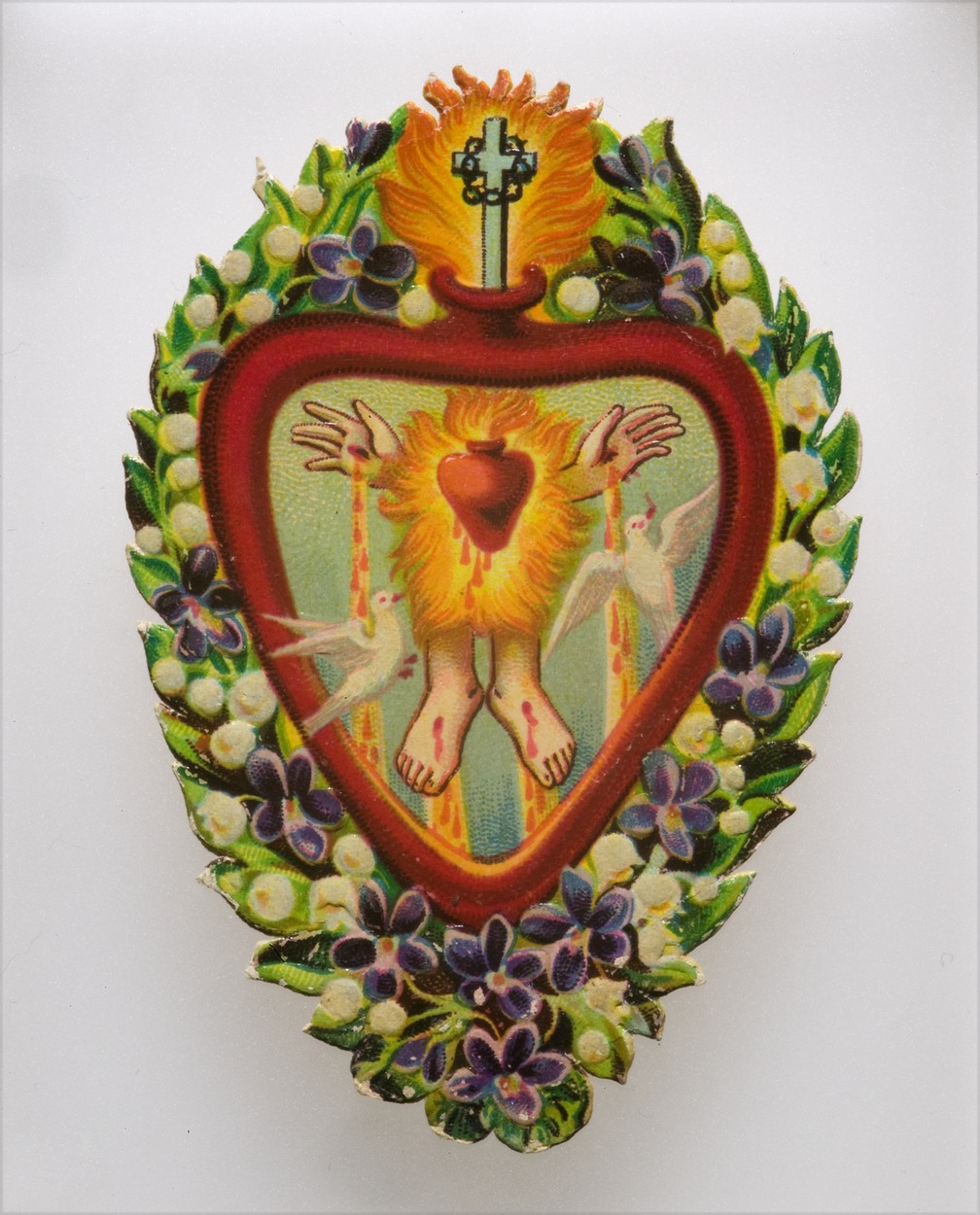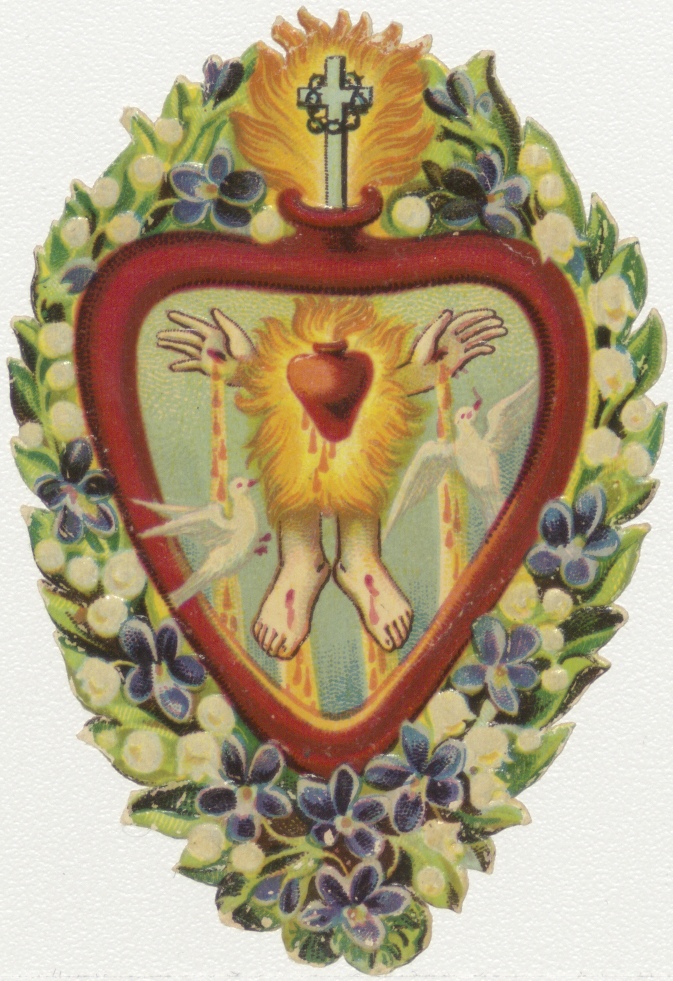 Vijf Heilige wonden in H. Hart, in decor van viooltjes en lelietjes van dalen