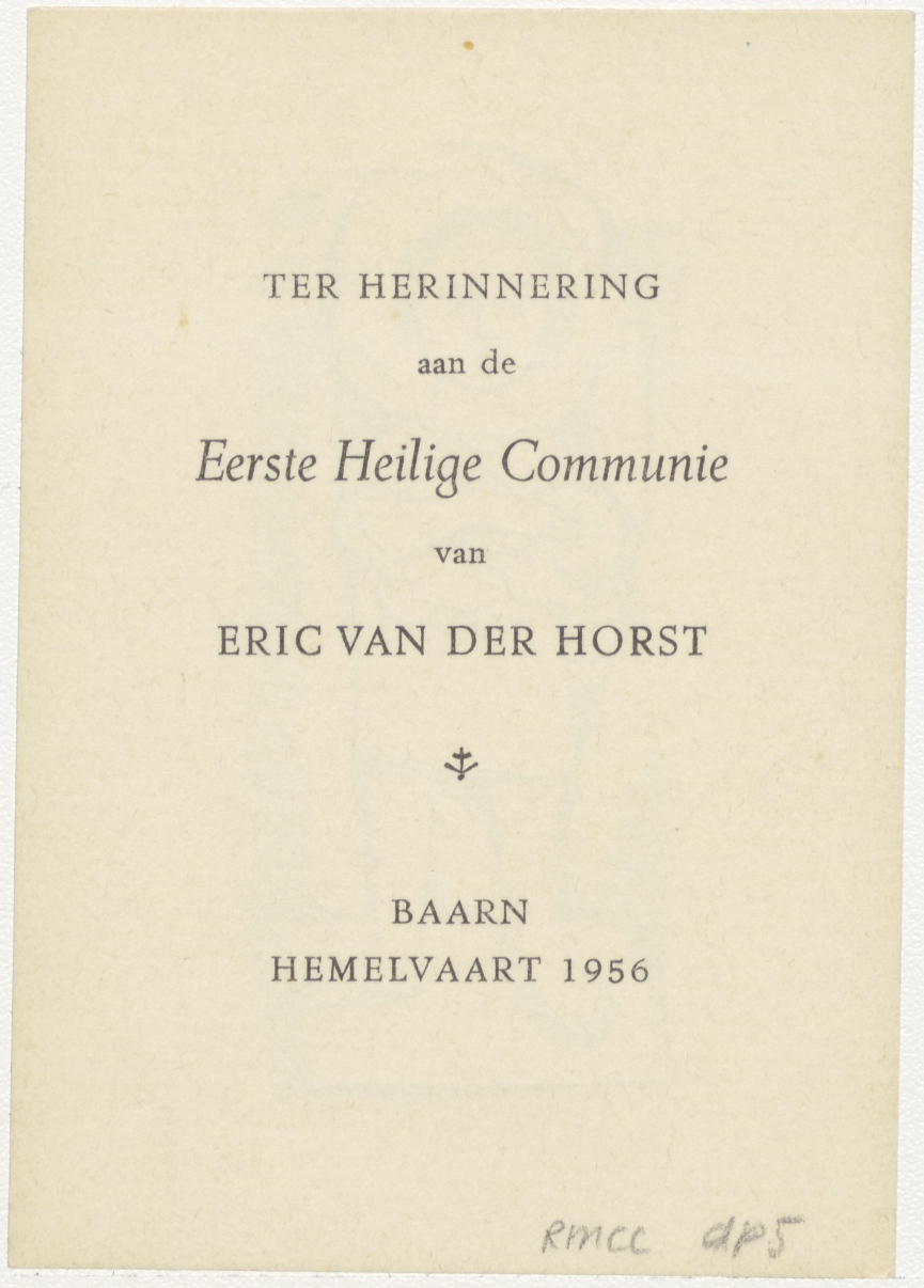 Communiekantje, kz. H. Communie Eric van der Horst, 1956 te Baarn
