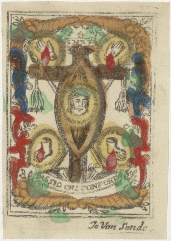 Vijf Heilige Wonden van Jezus en het kruis, ingekleurd