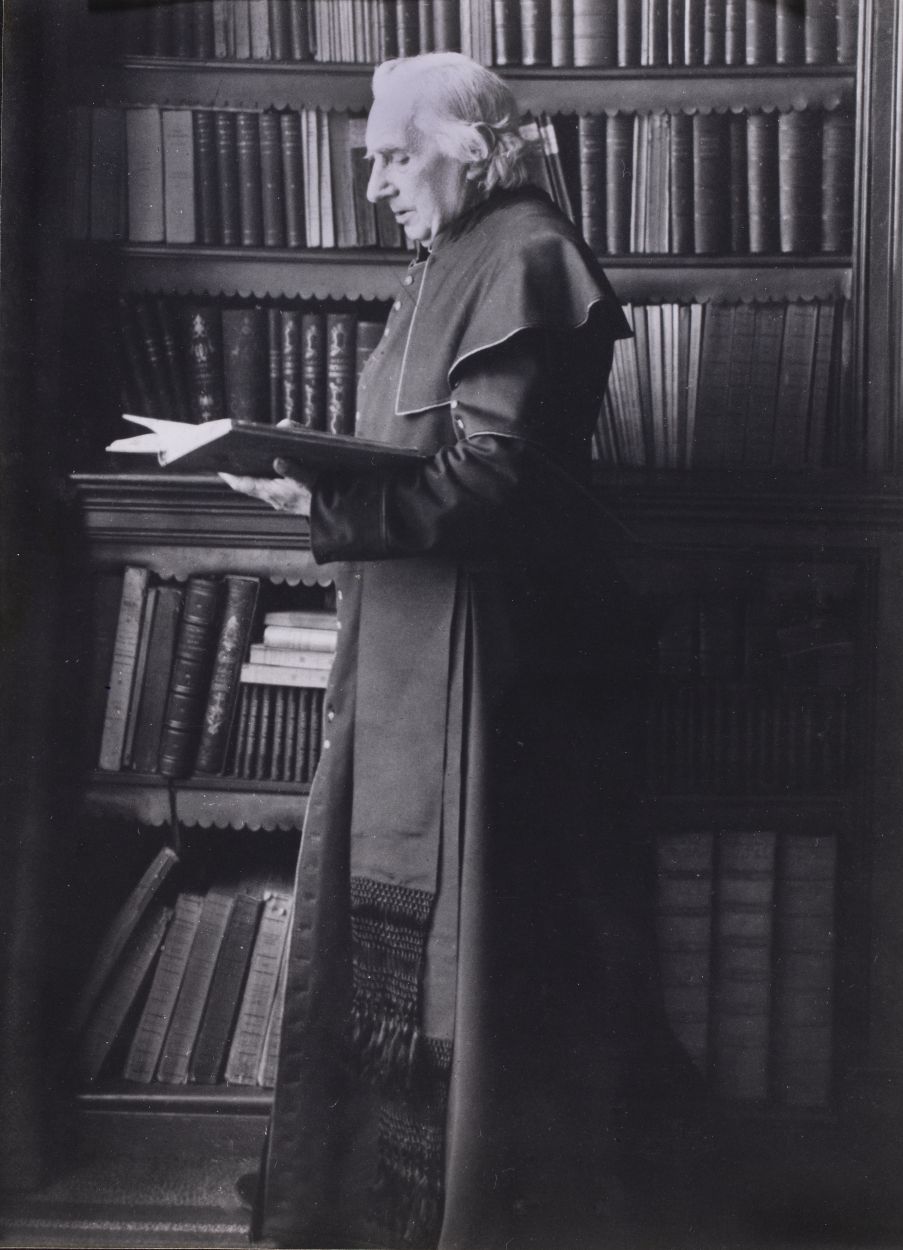 Portret van G.W. van Heukelum (1834-1910) bij boekenkast