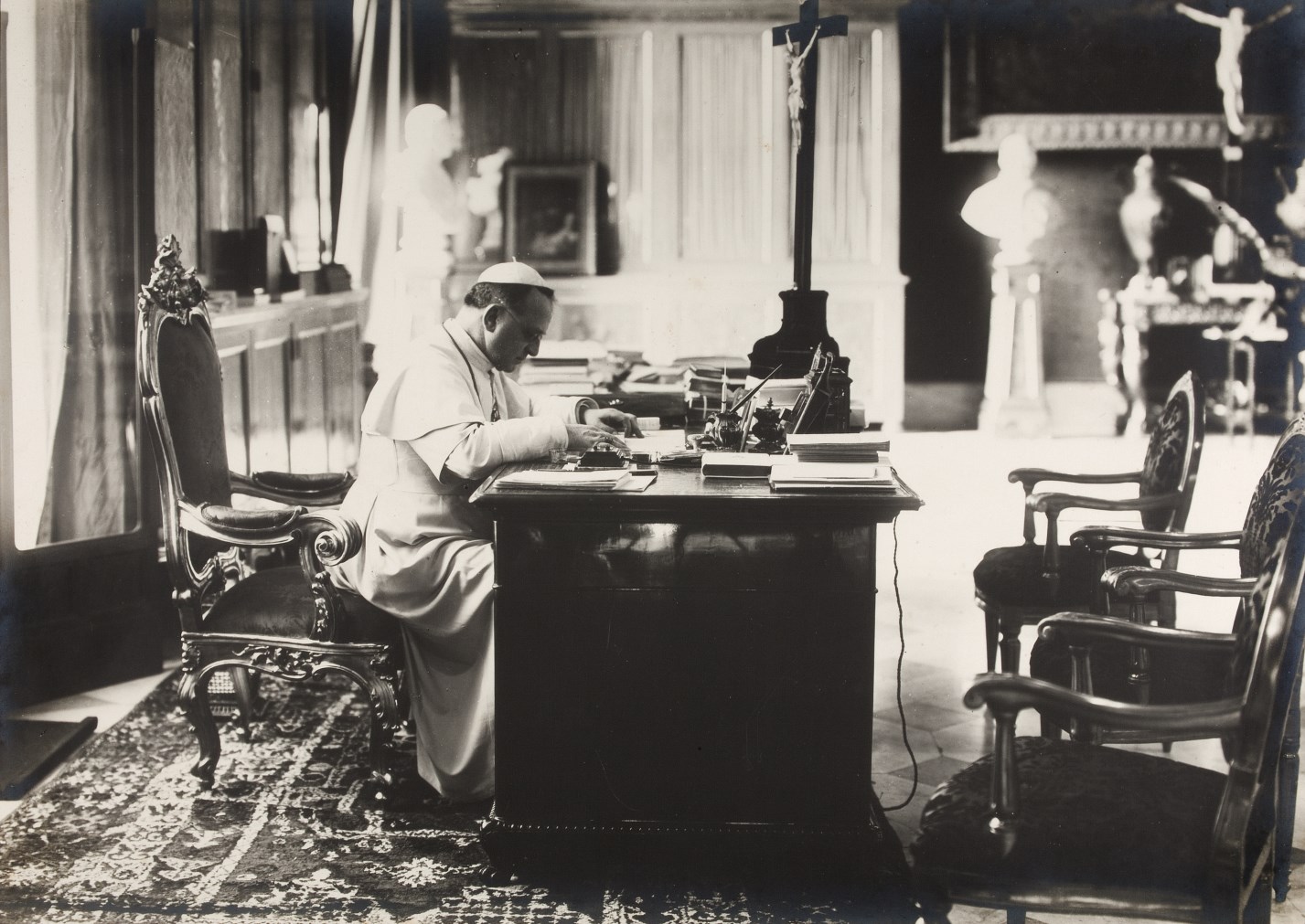 Paus Pius XI (1922-1939) aan zijn bureau