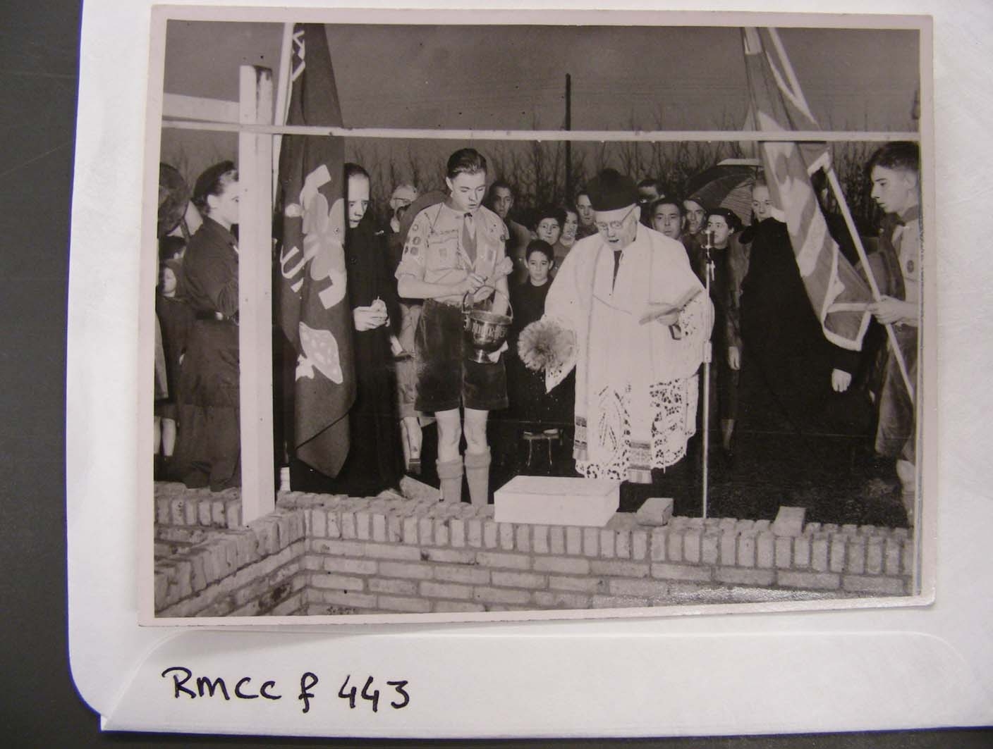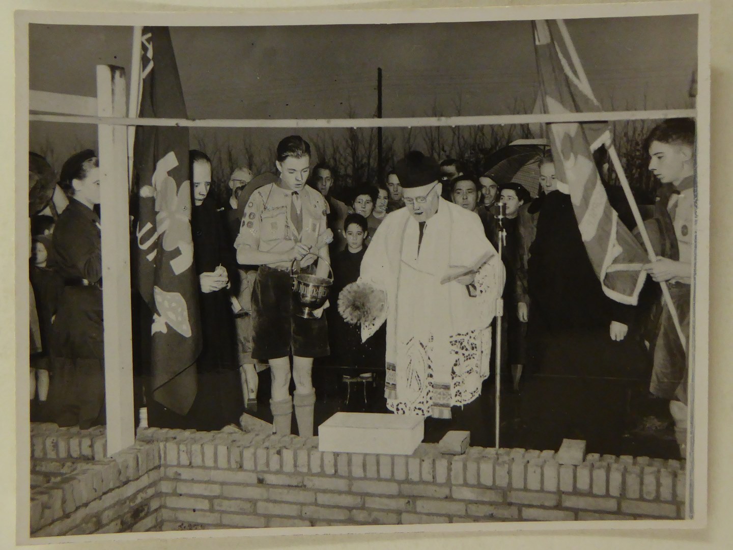 Eerste steenlegging van het jeugdcentrum te Maartensdijk door een pastoor
