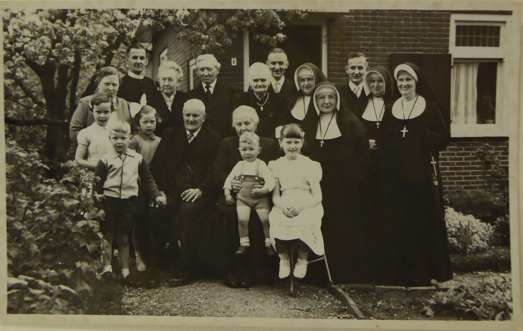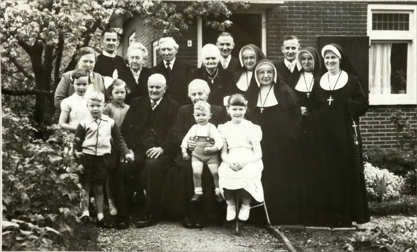 50-jarig huwelijksfeest familie Sontrop uit Houten, met vier nonnen en een pastoor