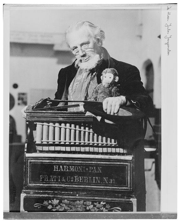 Jules Jongenelen, oprichter en conservator van Museum van Speelklok tot Pierement te Utrecht, in zijn vermomming als orgelman