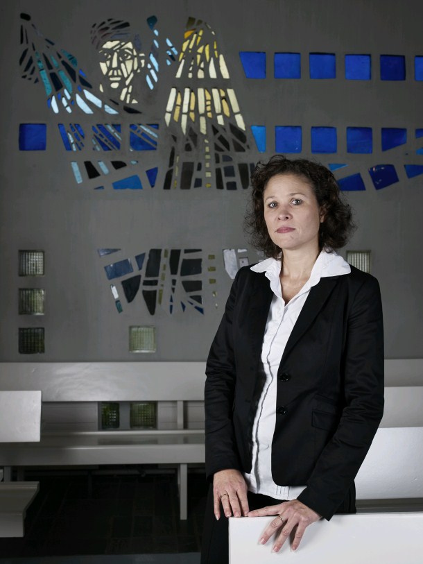 Portret van Rhoïnde Mijnals-Doth, predikant van de Evangelische Broedergemeente in Amsterdam, voorzitter van SKIN (Samen Kerk in Nederland)