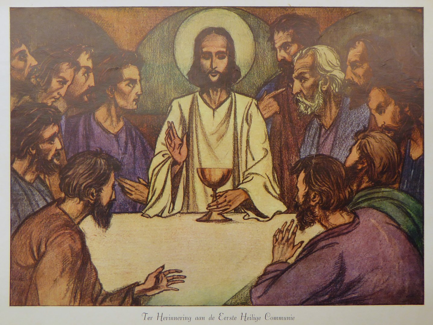 Prent met laatste avondmaal en "Ter Herinnering aan de Eerste Heilige Communie"
