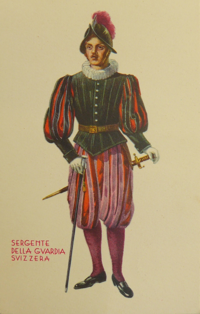 Prentbriefkaart met sergeant van de Zwitserse Garde