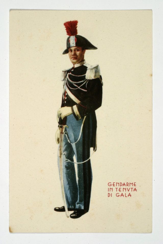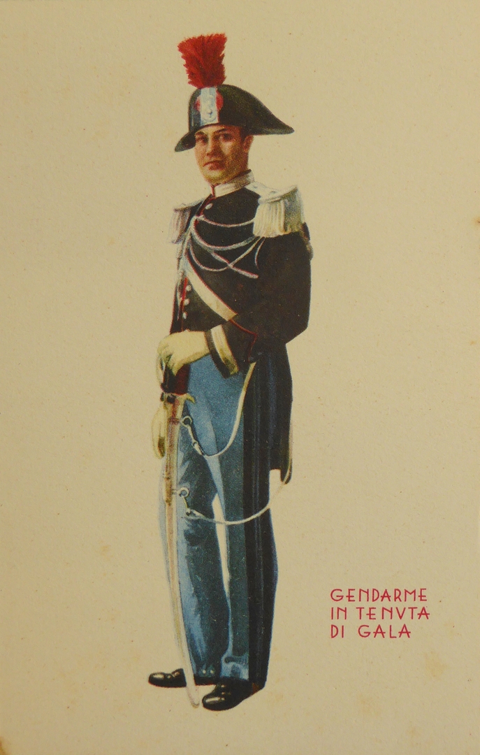 Prentbriefkaart met gendarme in gala