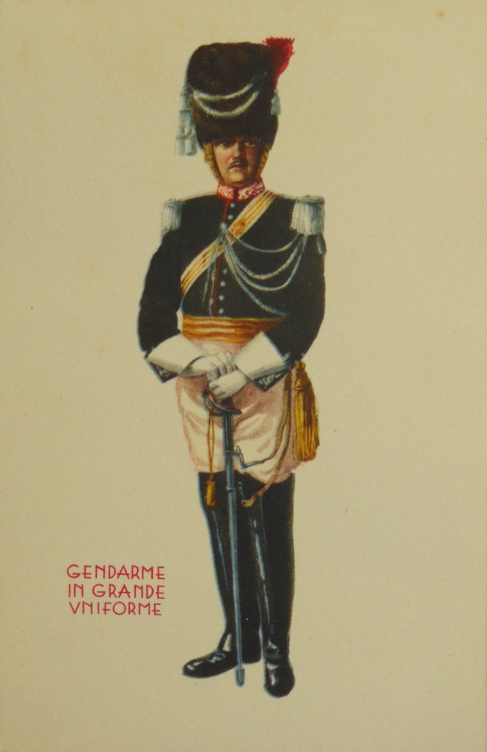 Prentbriefkaart met gendarme in groot gala