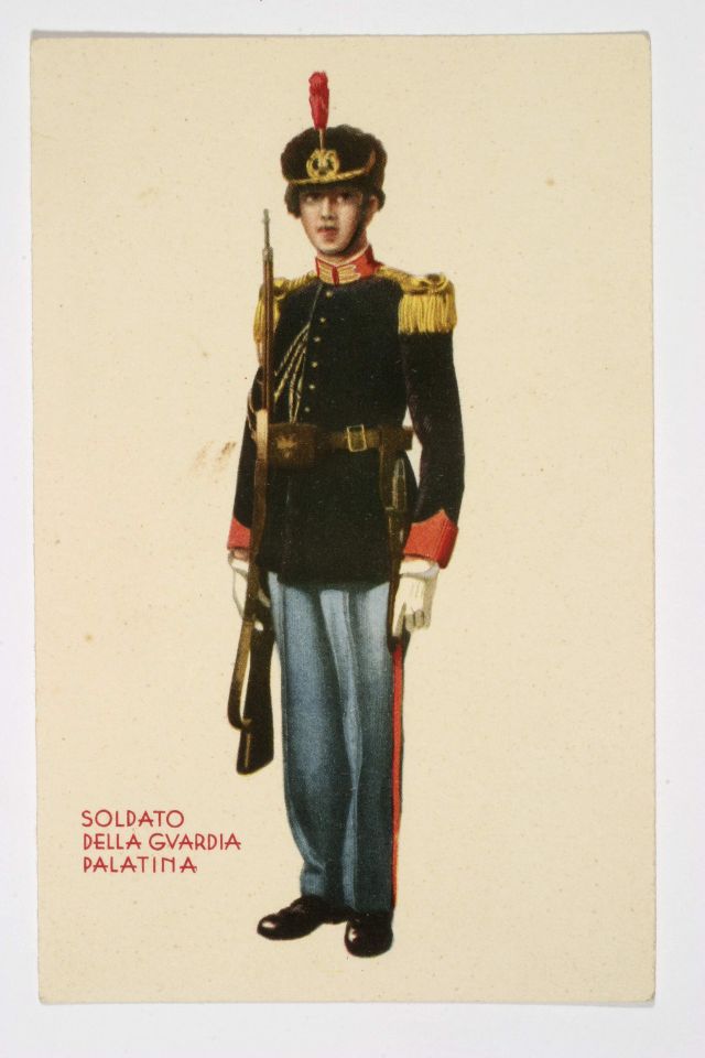 Prentbriefkaart met soldaat van de Palatijnse Garde