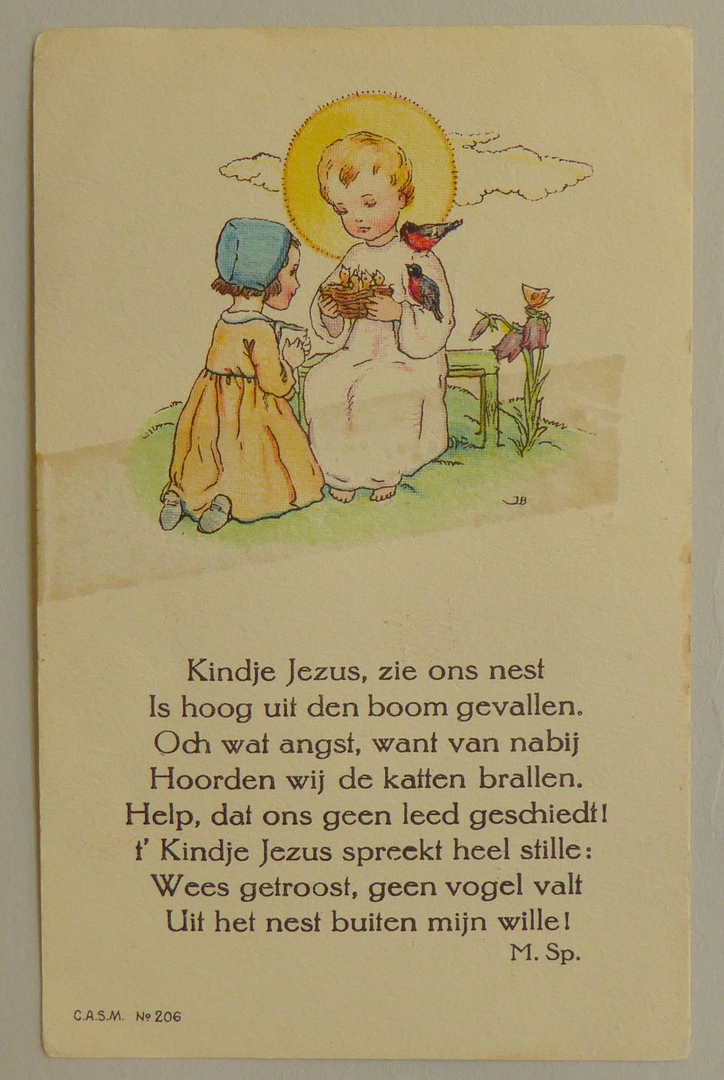 Kinderprent, nr. 206, met "Kindje Jezus, zie ons nest is hoog uit den boom gevallen ..."