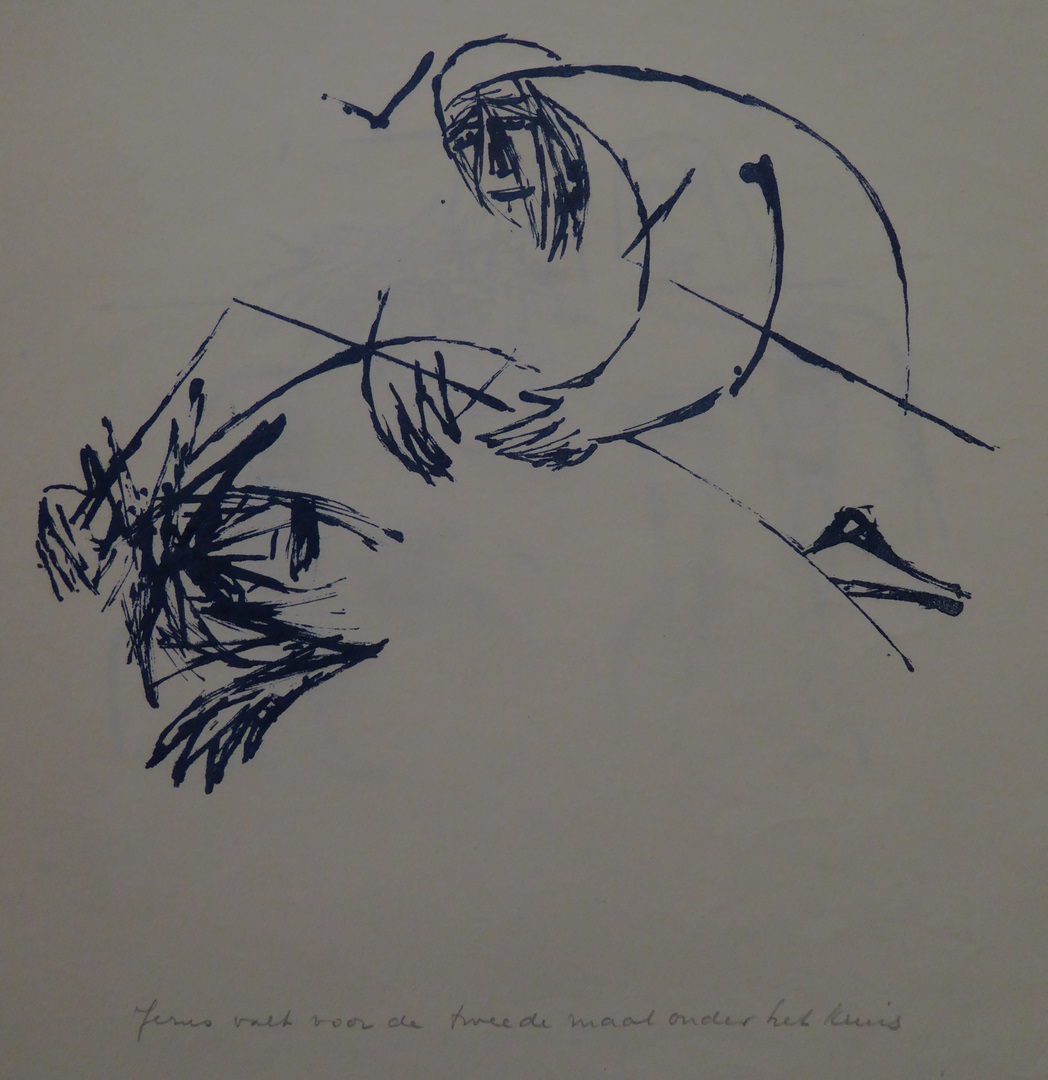 Kruisweg (serie in map, genummerd 54): "Jezus valt voor de tweede maal onder het kruis"