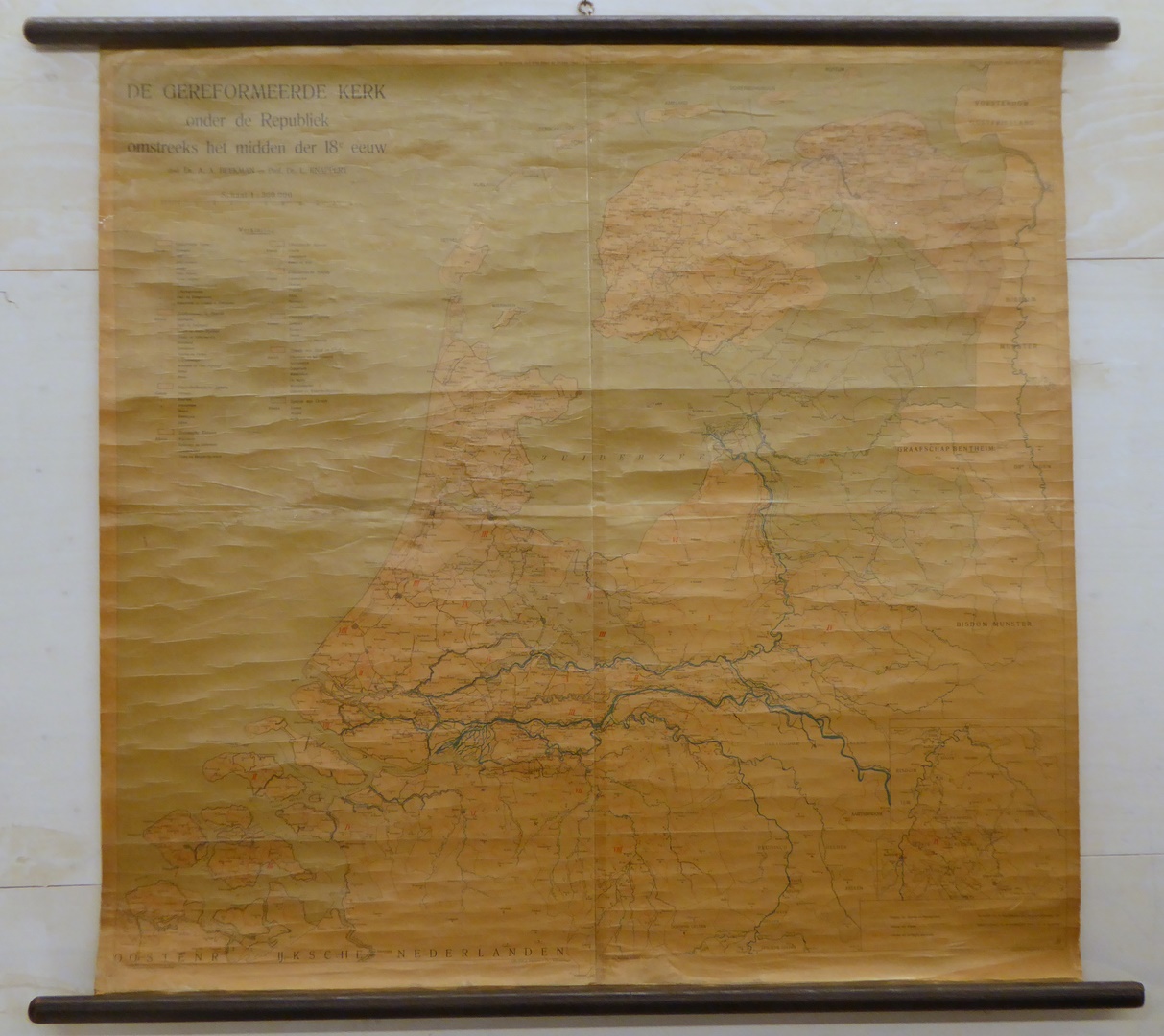 Landkaart met "De Gereformeerde kerk onder de Republiek omstreeks het midden der 18e eeuw"