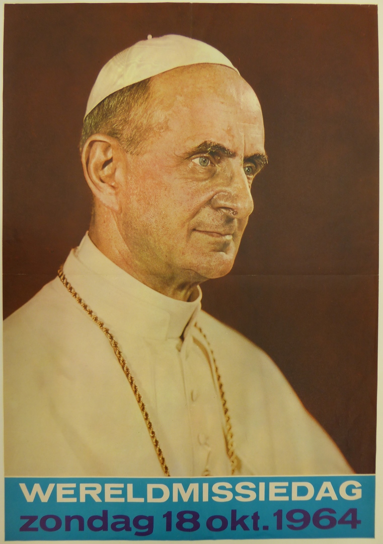 Affiche met foto paus Paulus VI, wereldmissiedag 1964