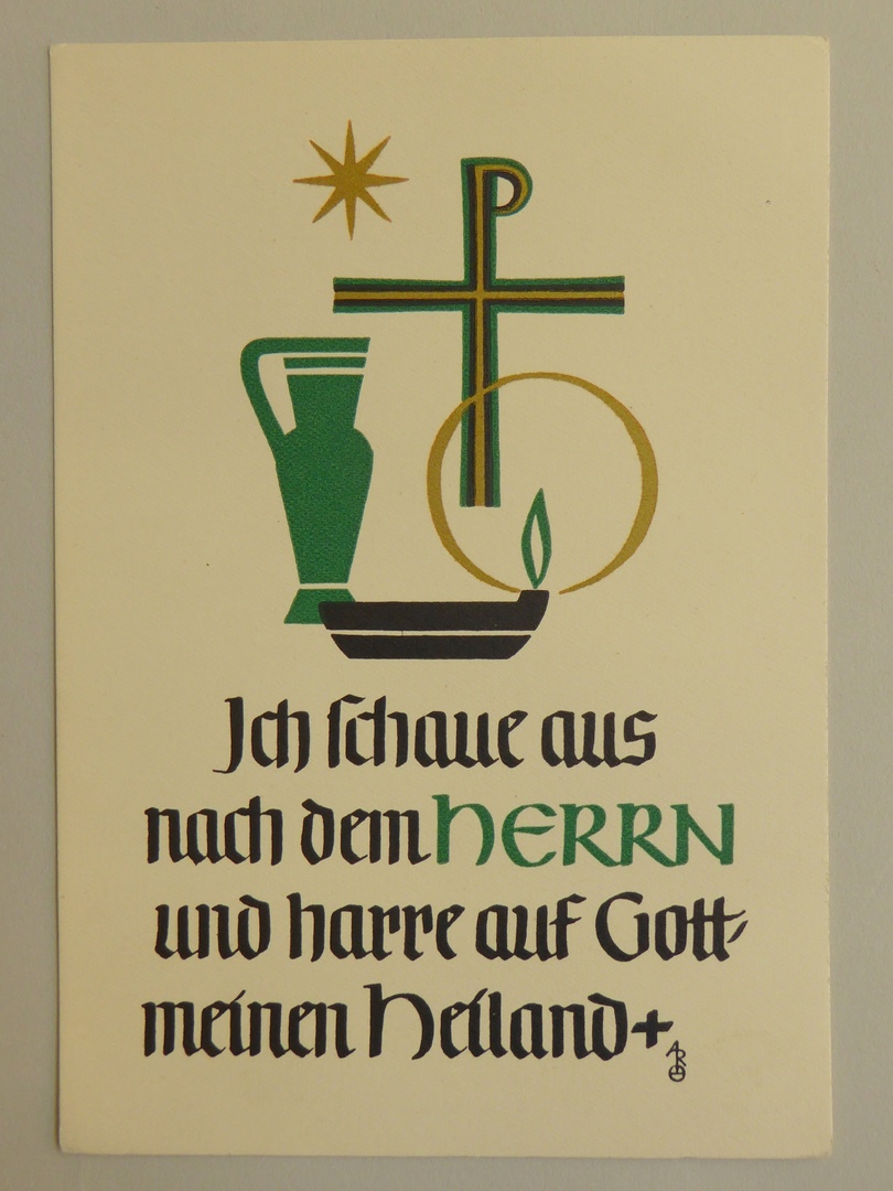 Kaart voor kerkelijk jaar met ik zie uit naar de Heer en wacht op God, mijn Heiland (Duits)