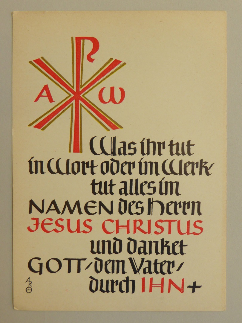 Kaart voor kerkelijk jaar met wat u doet in woord of in werk, doe alles in naam des Heren ... (Duits)