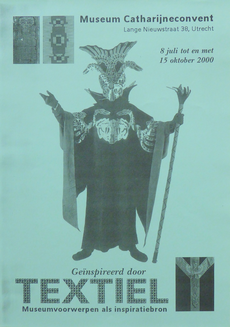 Museum Catharijneconvent ... Geïnspireerd door textiel ..., met o.a. figuur met staf en masker