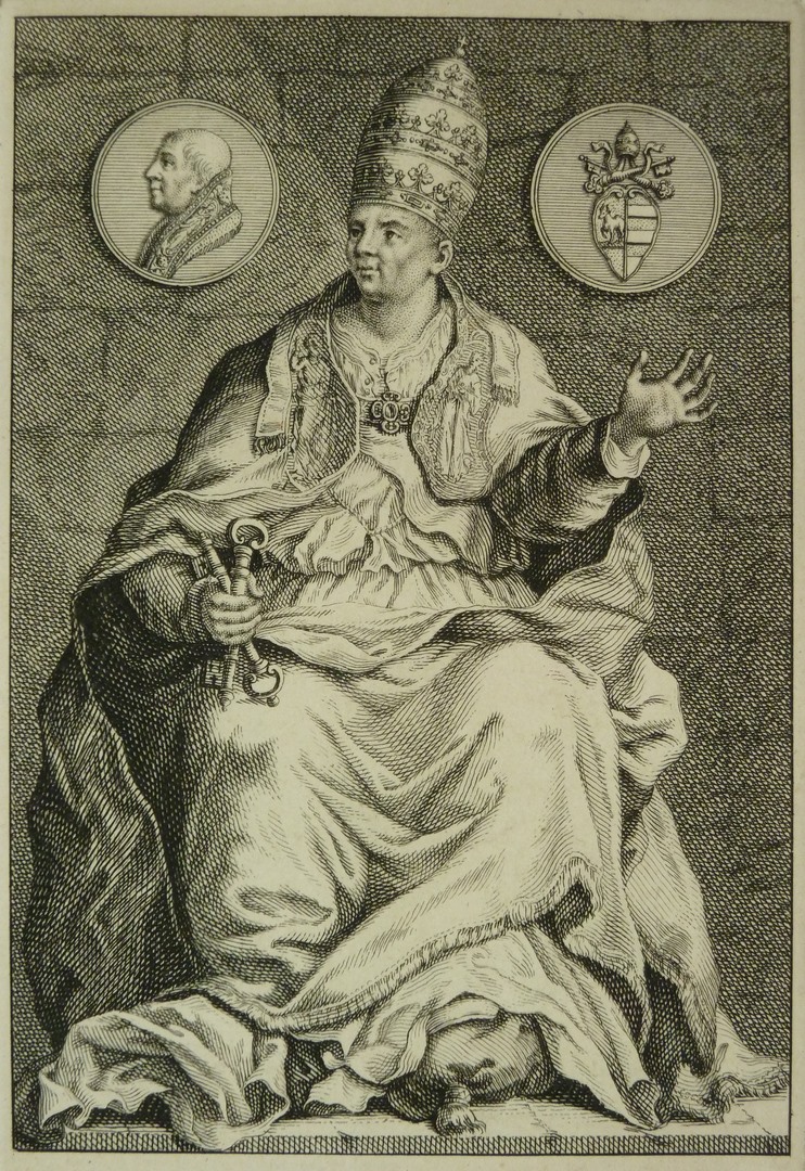 Paus Alexander VI (1492-1503), zittend met sleutels, met portret en profil en wapenschild