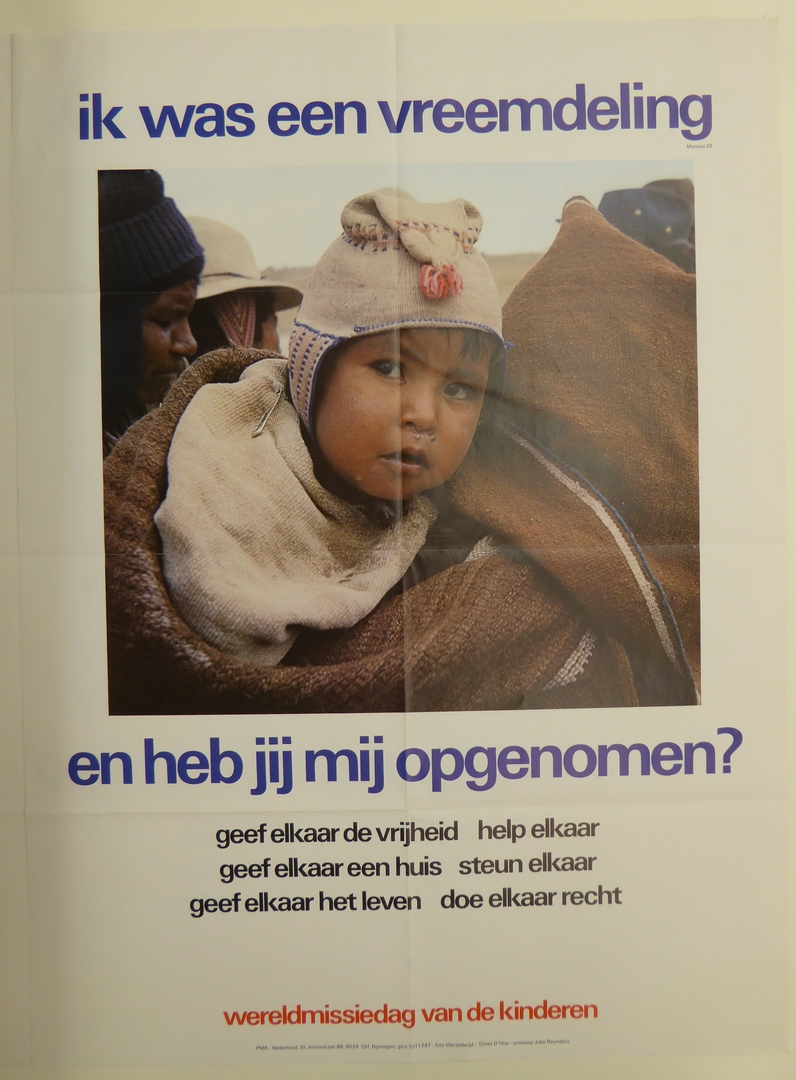 Affiche wereldmissiedag van de kinderen, "Ik was een vreemdeling ..."