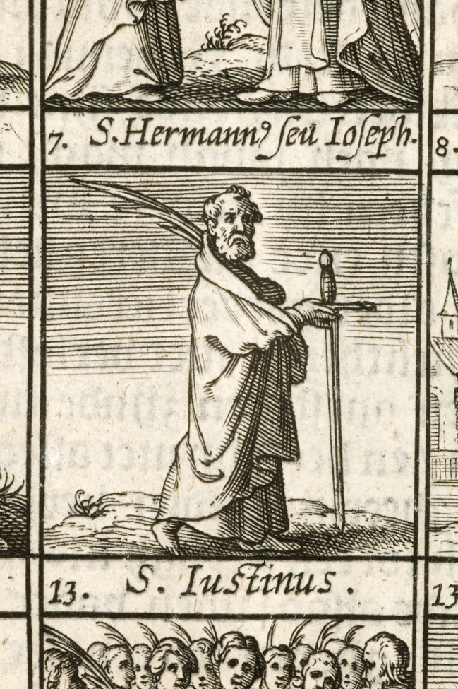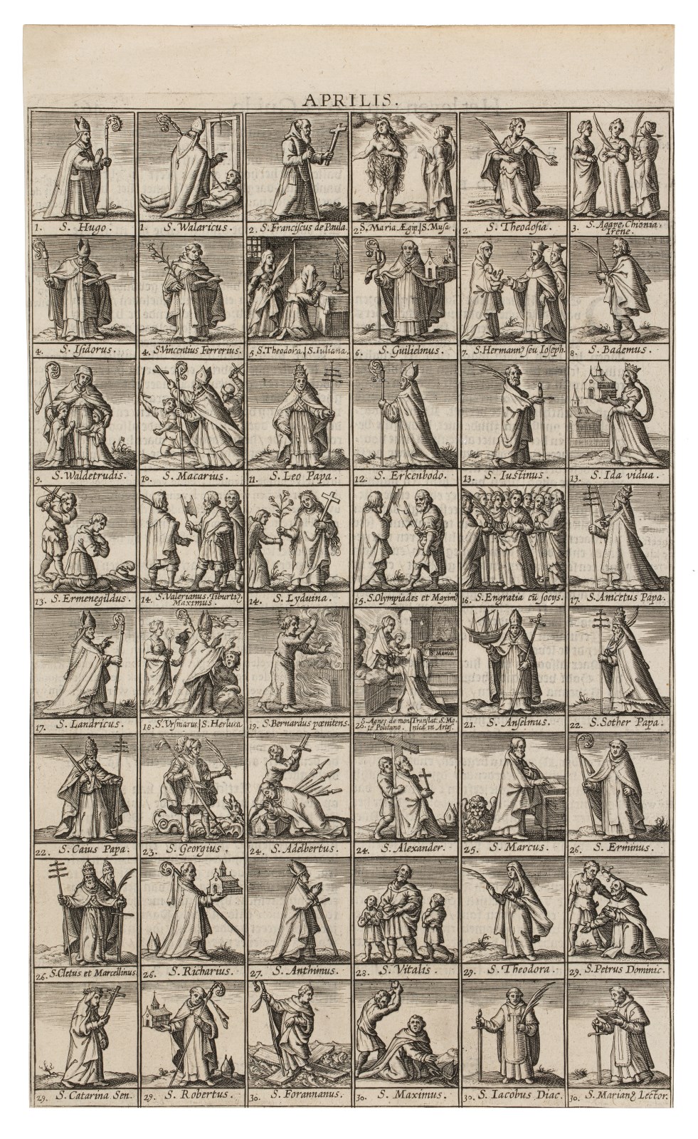 Pagina uit boek Generale legende der heylighen vergadert uut de H. Schrifture, Oude Vaders ende registers der H. Kercke.: Aprilis, met heiligen van de maand april