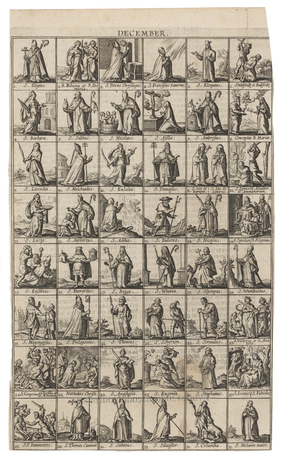 Pagina uit boek Generale legende der heylighen vergadert uut de H. Schrifture, Oude Vaders ende registers der H. Kercke.: December, met heiligen van de maand december