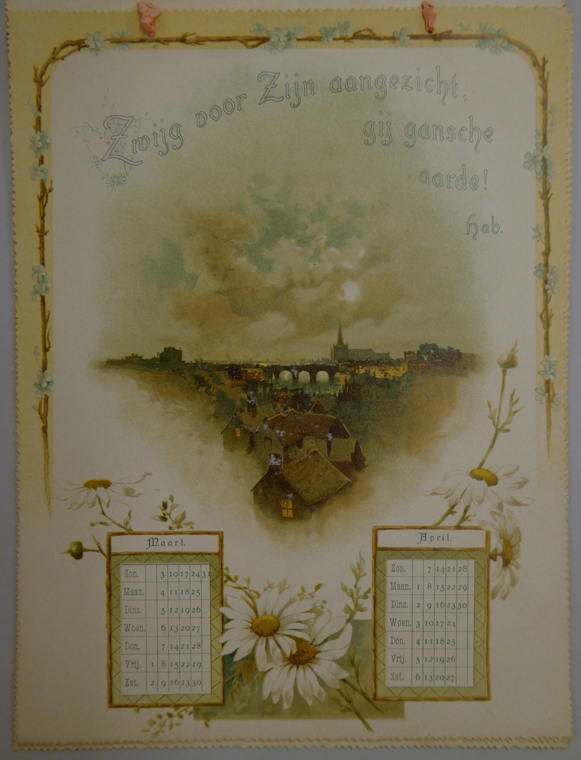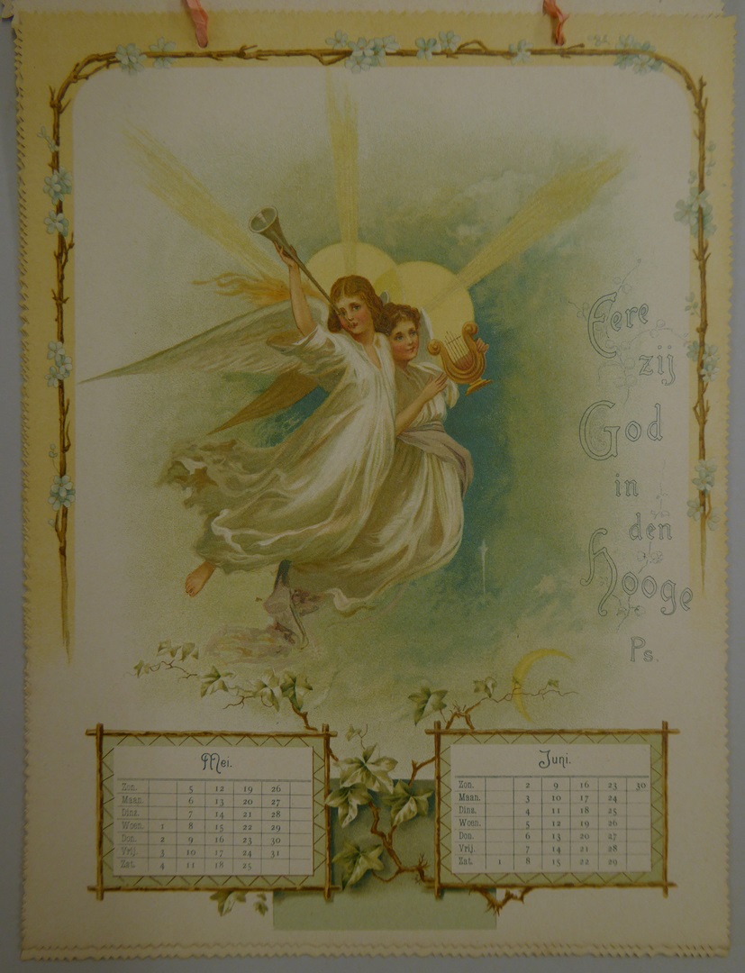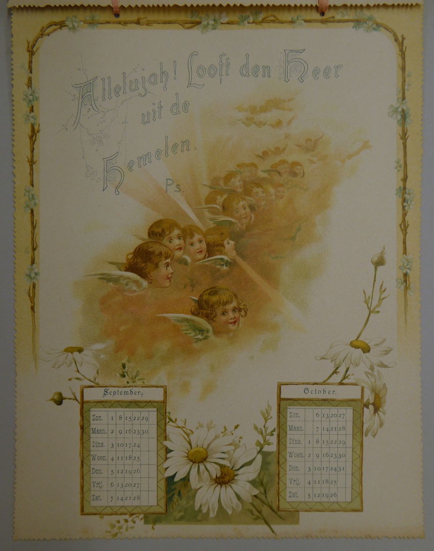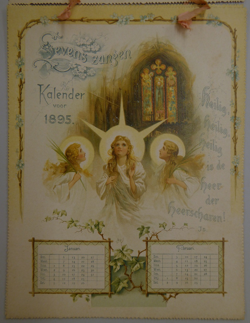 Levenszangen, kalender voor 1895 in zes bladen met platen en bijbelspreuken