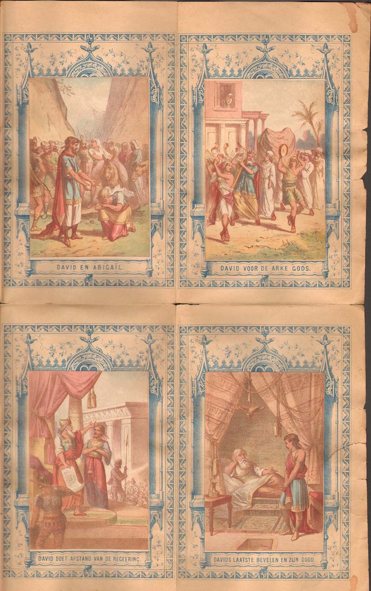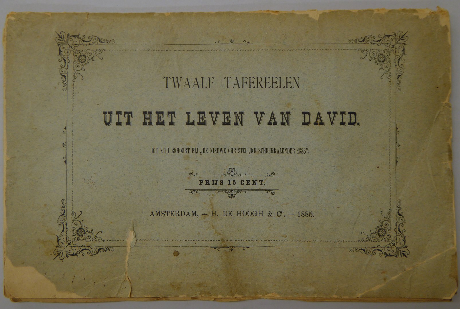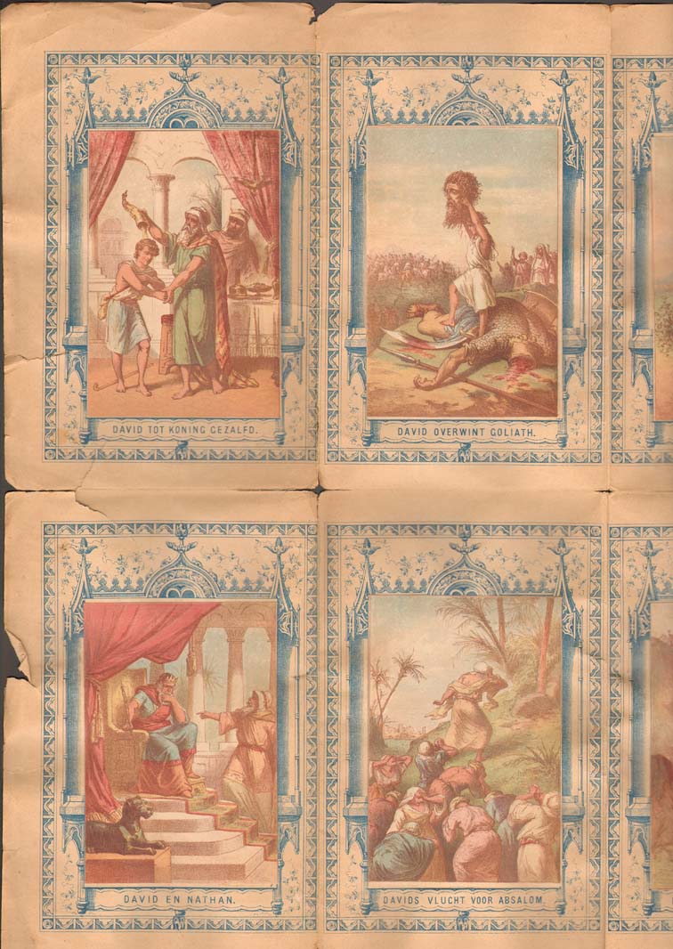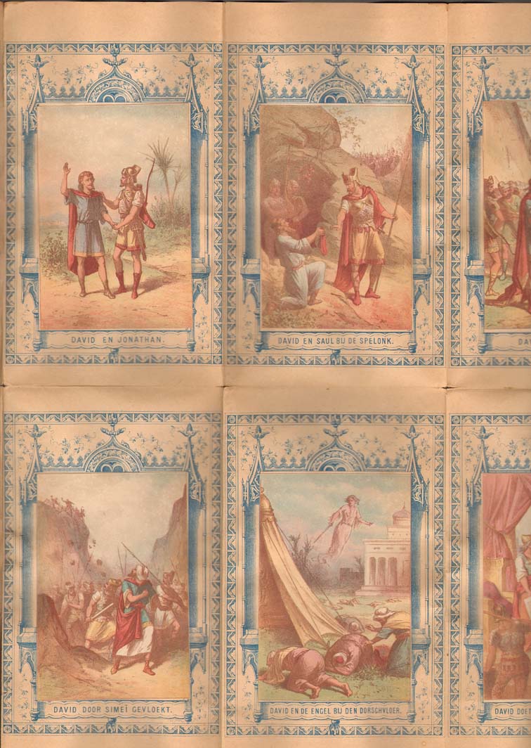 Omslag waarin prenten met "Twaalf tafereelen uit het leven van David. Dit etui behoort bij De nieuwe christelijke scheurkalender 1885"