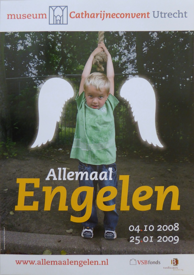 Affiche "Museum Catharijneconvent Utrecht, Allemaal engelen 04.10.2008 25.01.2009", met jongetje met engelenvleugels