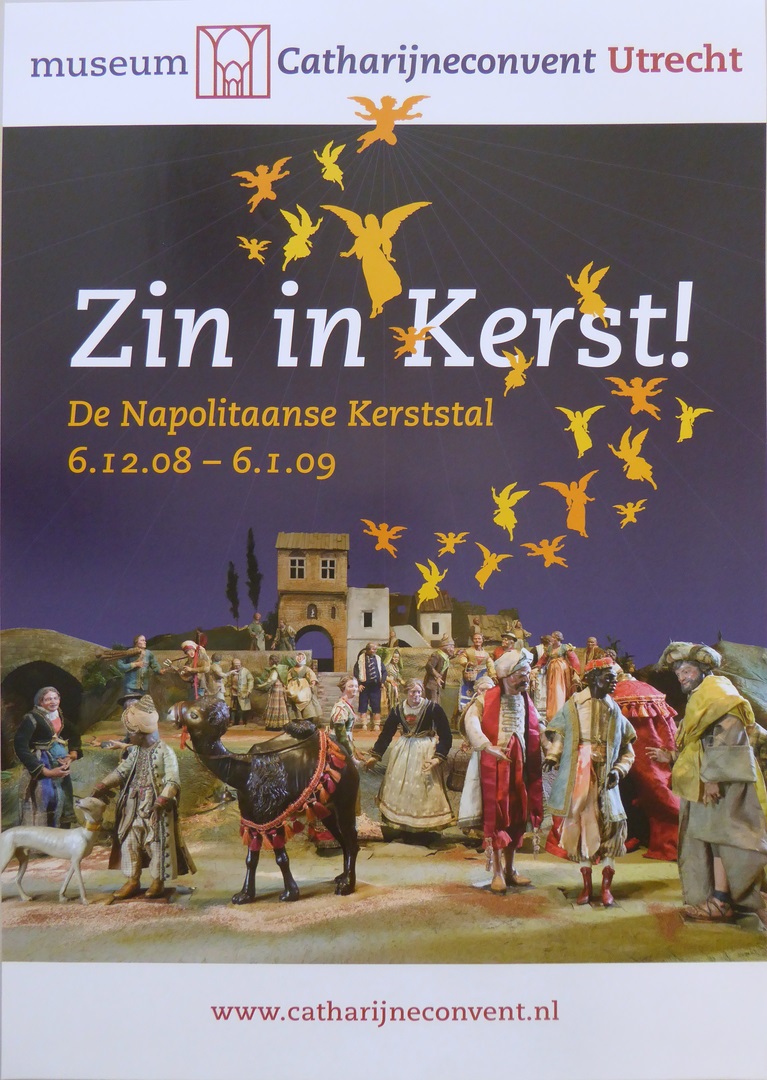 Affiche "Museum Catharijneconvent Utrecht, Zin in kerst! De Napolitaanse kerststal 6.12.08 - 6.1.09", met poppen uit Napolitaanse kerststal