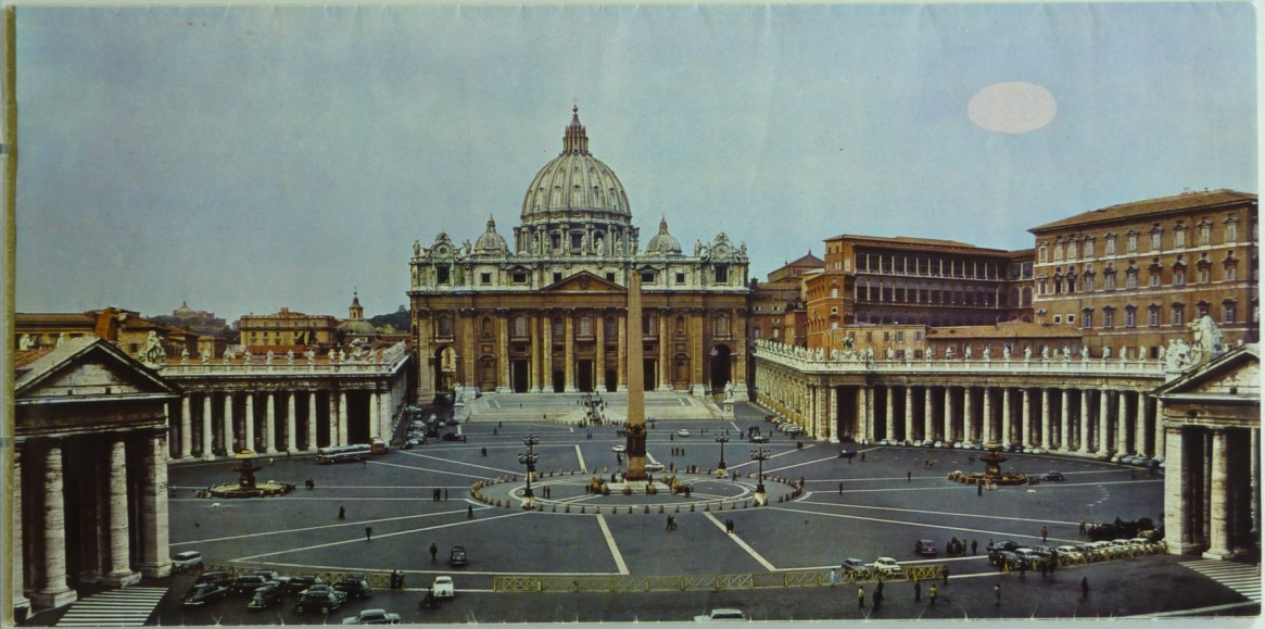 Opvouwbare plaat van het Tweede Vaticaans concilie, met afbeeldingen van o.a. alle pausen en op andere zijde foto's van alle deelnemende bisschoppen