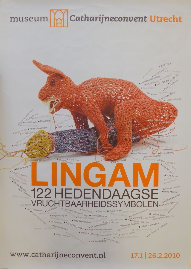 Affiche "Museum Catharijneconvent Lingam 122 hedendaagse vruchtbaarheidssymbolen ...", met haas van Johanna Schweizer