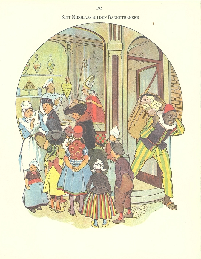 Sint Nikolaas bij den banketbakker, behorend bij 'St. Nikolaas en zijn knecht' van Jan Schenkman, p. 131, 132 uit boek