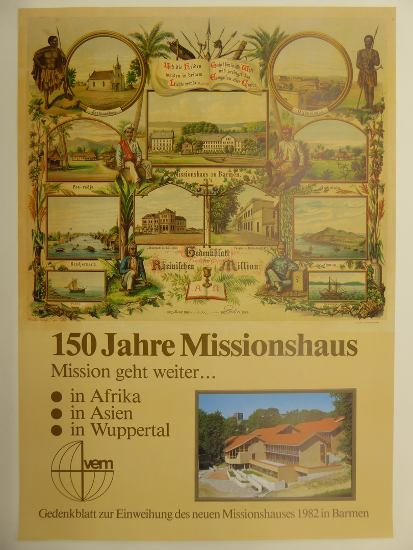 Affiche herdenking van de inwijding nieuwe missiehuizen 1982 in Barmen (Duits)