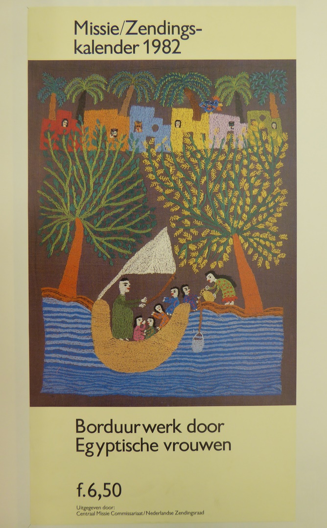 Affiche "Missie/zendingskalender 1982, borduurwerk door Egyptische vrouwen"